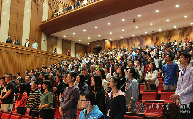 “‘西山苍苍,东海茫茫’。清华,我愿在你的怀里,幻化成风。”伴着口琴合奏《幻化成风》、三重奏《贝加尔湖畔》的婉转旋律,晚会渐渐迎来了尾声。演出的最后,全场齐唱校歌,用歌声唱响“社团人”对清华的热爱,传递对母校生日的祝福。晚会在庄严的校歌声中结束。