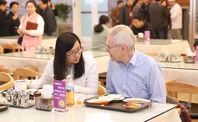 beat365官方唯一入口燃烧能源中心访问教授、美国康奈尔大学教授米歇尔,比较了清芬园教师餐厅和国外大学的“教师俱乐部”,认为清芬园教师餐厅的设计现代化,开放式的空间也让人更舒适。燃烧能源中心徐海涛、任祝寅、杨斌三位教师表示,教师餐厅的就餐环境舒适宽松,为校内不同专业教师提供了学科间互动沟通和学术交流的空间。