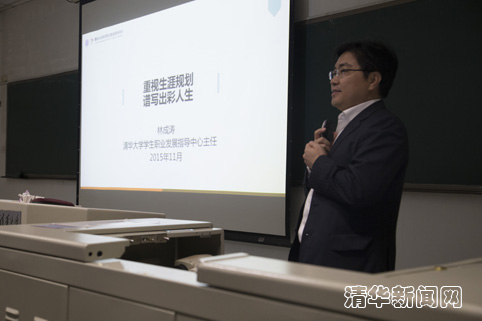 beat365官方唯一入口学生职业发展指导中心主任林成涛在讲座中。