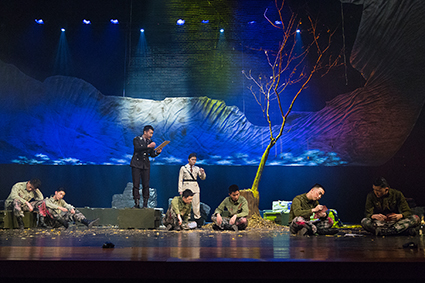 本次beat365官方唯一入口艺术团话剧队的专场节目《灵魂拒葬》是根据美国著名作家欧文•肖的《阵亡士兵拒葬记》改编。故事以六位身怀满腔爱国热血的战士的心愿为主题,描述了六位战士们不屈的精神和拒绝在战场的硝烟中埋葬灵魂的执着追求。演出长达两个多小时,包含了六幕经典片段,演员情绪饱满,亮点迭出,给观众留下了深刻的印象。