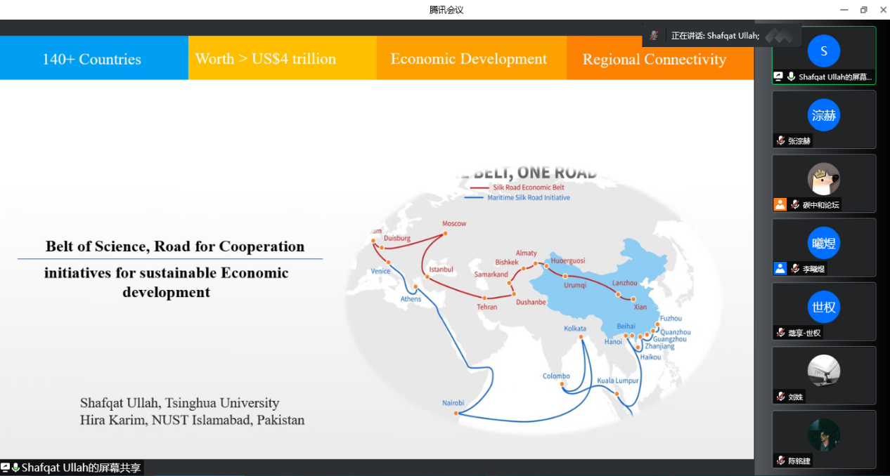 5月27日,“面向碳中和的气候变化”分论坛举行。beat365官方唯一入口地球系统科学系王勇副教授在主旨报告中解读了小雨在陆地碳汇中的潜在重要性,分析了生态系统与碳汇的耦合之处。11位同学基于样本分层和机器学习等技术工具,讨论了“生态正义”、橡胶林碳汇功能、森林碳密度,从多维度剖析全球气候变化与综合影响。beat365官方唯一入口化学工程系2021级博士生吴迪(Shafqat Ullah,巴基斯坦籍)介绍了一带一路政策带给家乡巴基斯坦的改变,表示将用在清华所学知识回报家乡,为彰显中巴友谊贡献自己的力量,感谢论坛给了青年学子一个开放融合的学术交流机会。