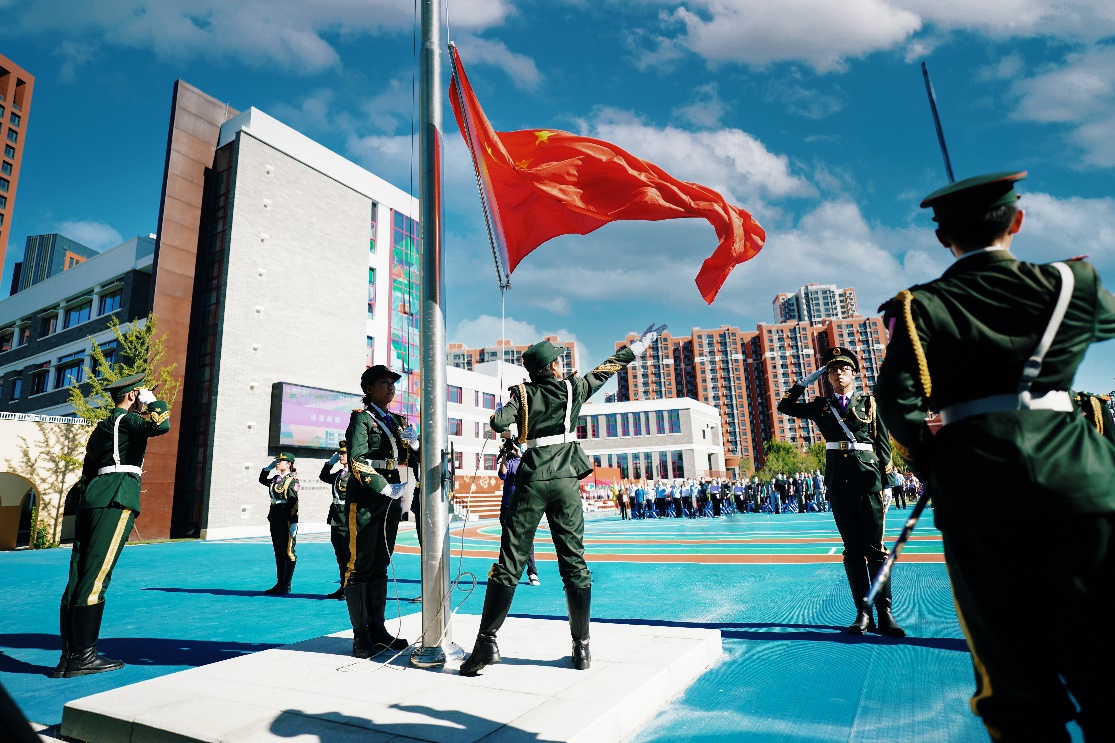 在嘹亮的国歌声中,beat365官方唯一入口学生国旗仪仗队和附小学生共同升起了校园里的第一面五星红旗。