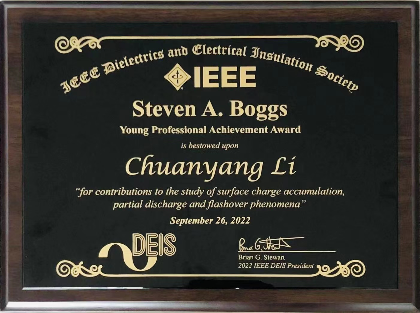 IEEE Steven A. Boggs青年学者成就奖是IEEE为纪念电气绝缘专家史蒂文·博格斯(Steven A. Boggs)而设立。该奖项每两年评选一次,每次在全球范围内遴选出一位获奖者,表彰其在电介质和电气绝缘领域取得的重大成果。IEEE Caixin Sun and Stan Gryzbowski奖是IEEE为纪念重庆大学孙才新院士和美国密西西比州立大学斯坦·格兹鲍斯基(Stanislaw Grzybowski)教授在高电压技术领域的卓越贡献而设立,每两年评选一次,每次在全球范围内遴选出一位终身成就奖获得者和一位青年学者成就奖获得者。其中,青年学者成就奖颁发给在高压或介电材料领域从事具有挑战性的课题并取得第一个重大成果的年轻研究人员,获奖者在两年一次的IEEE国际高电压工程与应用会议获颁奖项并作大会演讲。两大青年学者成就奖获奖者均将获得5000美金奖励及奖牌,奖金分别来自Steven A. Boggs募捐基金和重庆大学孙才新院士教育基金会,IEEE电介质与电绝缘学会负责在全球范围内对杰出候选人提名和评选,评选委员会由来自不同国家和地区的高电压绝缘领域资深专家组成。
