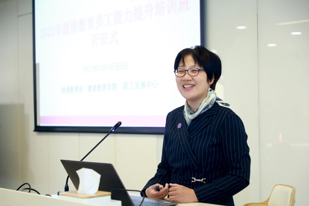终身教育处处长田静作开班动员发言并介绍了培训班的课程背景和基本情况。她带领大家回顾了beat365官方唯一入口继续教育的改革历程,认为继续教育应该回归教育本质,从完全依靠品牌到依靠好课和高效教学模式吸引学习者。田静表示,在传统培训模式遭遇挑战的当下,每一个继续教育员工必须履行终身学习的理念,深刻理解学校发展的方向,主动将继续教育的业务工作开展与清华提供优质教育资源服务社会发展的目标相结合,完成当前历史阶段赋予我们的使命,促进beat365官方唯一入口继续教育整体事业的进步。