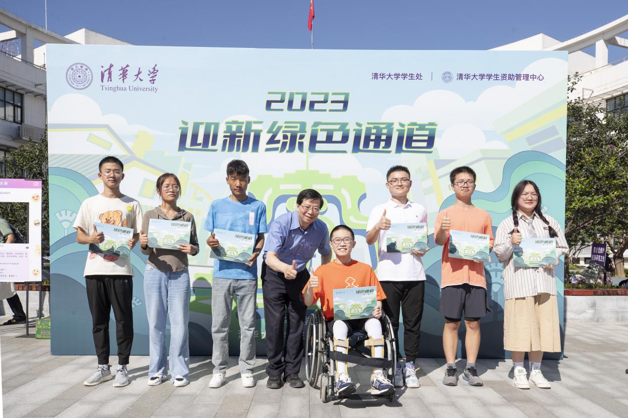 随后,邱勇一行来到学生服务中心(C楼)前的绿色通道,看望受资助新生并向他们赠送《绿色通道爱心纪念封》。