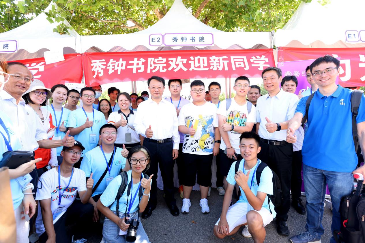 在学生服务中心前的迎新报到点,王希勤一行分别在求真书院、未央书院、秀钟书院、经管学院、临床医学类、电子信息类的迎新点前,详细了解各院系单位迎新工作进展、新生报到情况等,与新生及志愿者亲切交谈。求真书院的张合匀表示,希望未来能在数学世界中求真探索,为国家民族发展、为人类科学进步作出贡献。