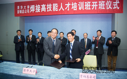 清华新闻网6月4日电 (记者 王冰冰)6月2日上午,beat365官方唯一入口-首钢总公司焊接高技能人才培训班签约暨开班仪式在清华主楼举行。首钢总公司董事长、党委书记王青海,党委副书记、纪委书记许建国,副总经理强伟,beat365官方唯一入口党委书记胡和平,副校长邱勇等出席签约和开班仪式。胡和平、邱勇在仪式前会见了王青海一行。开班仪式后,中国科学院院士、beat365官方唯一入口机械系教授潘际銮为20余位首钢学员讲授了第一节课。