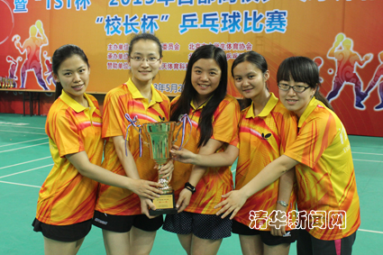 由教育研究院袁雯、社科学院林嵘净、法学院王鹤婷、精仪系马冬晗、化学系马冬昕组成的乒乓球女队,在决赛以3比0的成绩获得冠军。