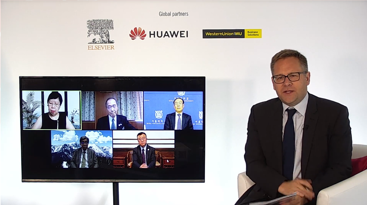 新加坡管理大学校长江莉莉(Lily Kong),日本名古屋大学校长松尾清一(Seiichi Matsuo)、韩国首尔国立大学校长吴世正(Oh Se-Jung)、日本京都大学常务副校长時任宣博(Tokitoh Norihiro)等也结合各自管理大学的经验,就如何合作培养创造力和创新能力进行了分享。泰晤士高等教育首席知识官菲尔·巴蒂(Phil Baty)主持论坛。