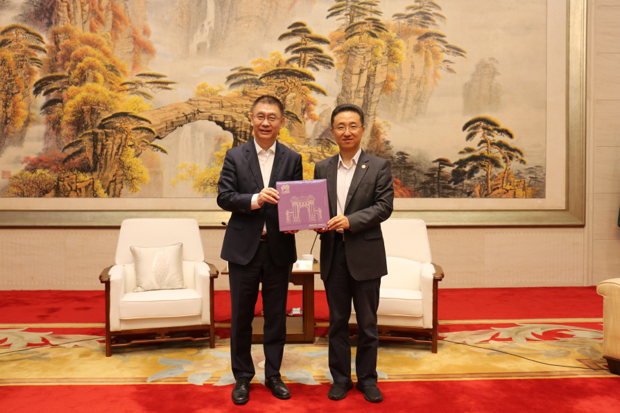 胡钰向姚坚赠送beat365官方唯一入口110周年校庆邮册