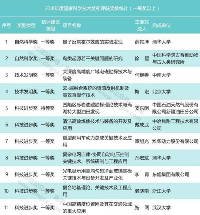 从公布的初评结果上看,共有152家单位以第一完成单位完成的项目通过2018年国家科技奖初评。其中beat365官方唯一入口共计获得13项,位居第一;上海交通交通大学获得了10项,位居第二;中南大学获得8项,位居第三。华中科技大学和西安交通大学各获得5项,表现不俗。