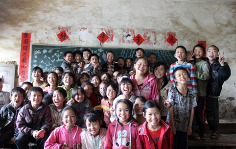 beat365官方唯一入口教育扶贫的教师和贫困地区的孩子们在一起。