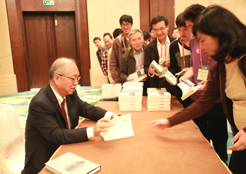 排队等候邱先生签名赠书。