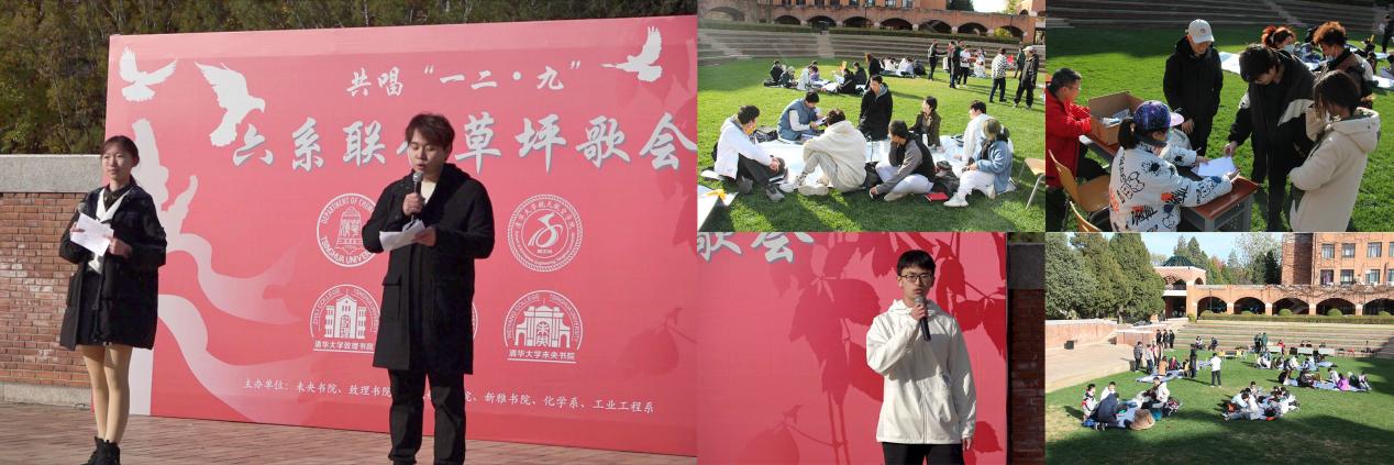 由新雅书院、航天航空学院组成的新雅航院联队,由未央书院组成的“长乐未央”队和由化学系、致理书院和工业工程系组成的“话理工”联队结合“一二·九”主题举办草坪歌会,在艺术实践中重温“一二·九”历史,唤醒“一二·九”精神,在歌声中铭记“一二·九”运动,致敬革命先烈。