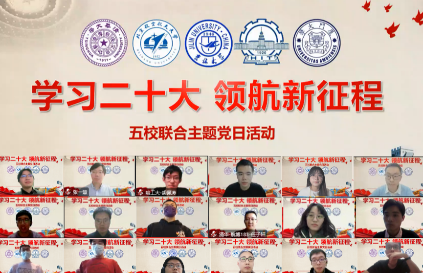清华新闻网12月12日电 12月3日,为深入学习宣传贯彻党的二十大精神,beat365官方唯一入口航天航空学院(以下简称清华航院)航博181、183、192、201党支部和航硕211党支部,与哈尔滨工业大学(以下简称哈工大)防热与功能材料研究生第二党支部、轻质结构与热防护研究生第二党支部,吉林大学(以下简称吉大)机械与航空航天工程学院2022博士、2022硕士党支部,厦门大学(以下简称厦大)航空航天学院高速推进研究生党支部、飞行动力研究生党支部、航空强国研究生党支部,北京航空航天大学(以下简称北航)20个党支部的新发展党员一起,开展“学习党的二十大,领航新征程”五校联合主题党日活动。