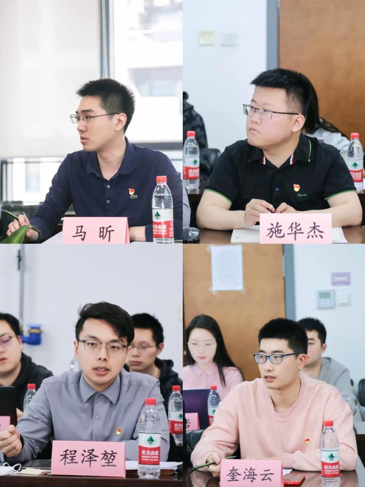 研究生会功能型党支部成员马克思主义学院2022级博士生马昕、公管学院2021级硕士生施华杰、材料学院2021级博士生程泽堃、数学系2021级博士生奎海云结合自身感悟和情况先后进行发言。