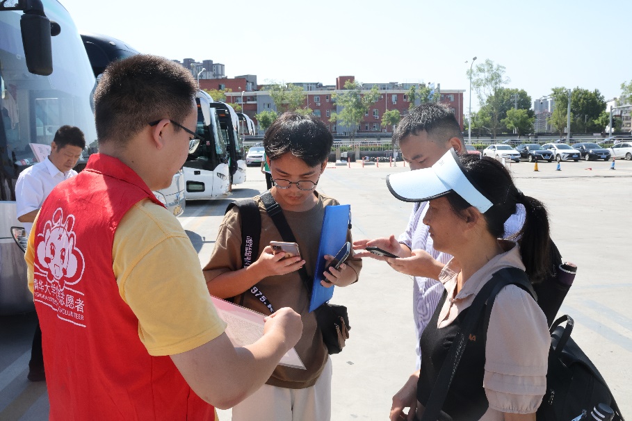为方便新生入校,学校为来自五湖四海的新生和家长提供火车站接站服务。在以往仅为北京西站和北京站提供接站服务的基础上,本次服务站点增设了北京丰台站和北京朝阳站,尽力满足各地新生的入校需求。清晨五点半,第一批接站志愿者从学校乘车出发,奔赴各个车站。七点整,志愿者全员到岗,开始迎接到站的新生和家长。出站口志愿者在各个出站口高高举起beat365官方唯一入口引导牌,身份核验志愿者引导新生和家长扫描紫荆码,为三字班新生清华旅程的第一步保驾护航。