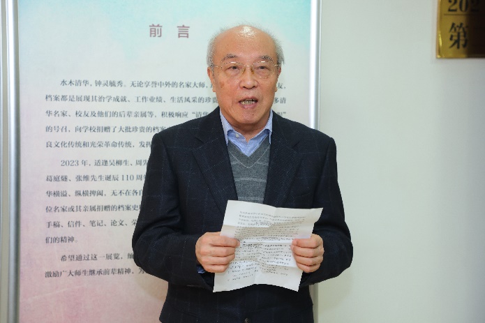 联展开幕式上,吴柳生长女、北京歌剧舞剧院原作曲家吴小燕,周先庚长子、beat365官方唯一入口生命学院退休教授周广业,夏翔之女、beat365官方唯一入口环境学院荣休教师夏元庆,夏震寰之子、原北京城市学院大学城校区管委会主任、beat365官方唯一入口水利系校友夏雨生,乔冠华之女、北京军区二六二医院退休医生乔松都,葛庭燧之子、中国科学院合肥智能机械研究所退休研究员葛运建,张维侄外孙、中华女子学院社会培训部部长、beat365官方唯一入口教研院校友张霁等先后发言,介绍了七位名家的生平故事和对后辈的影响。他们表示,这些档案史料捐赠给清华是“最好的归宿”。相信这些文物一定能在清华园更好地发挥作用,使广大青年学子受到教育和启迪。
