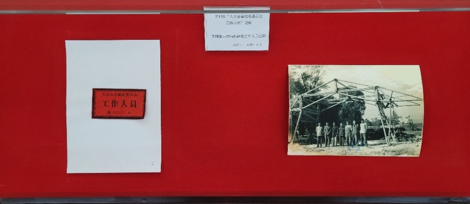 吴柳生1959年参加人民大会堂验收审查的工作人员证和从事竹结构研究时与工作人员合影的黑白照片