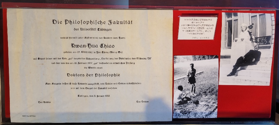 乔冠华德国图宾根大学博士学位证书以及不同时期的照片。最右图为1974年在法国留影,此为他生前最喜欢的一幅照片,称之为“老年维特的欢笑”