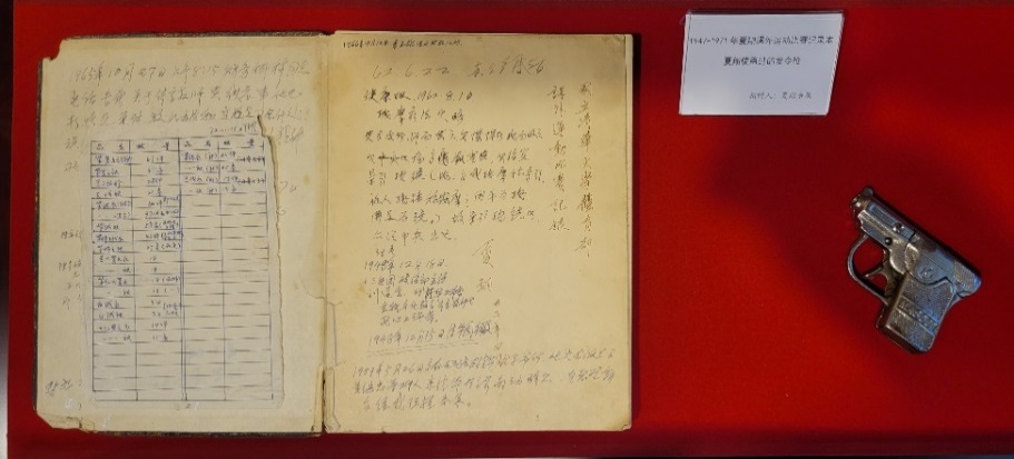 夏翔留下的1947-1971年课外运动比赛记录本和担任全运会大运会等众多运动会总裁判长的发令枪
