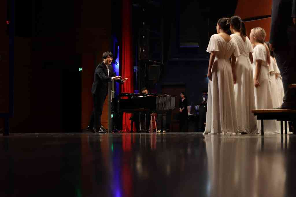 音乐会在《摇篮曲》悠远动人的旋律中拉开序幕。这首无伴奏混声合唱作品由2019级男低音特长生景雁南编配并指挥,一字一句,饱含着对东北家乡的思念与深情。上半场第一部分为景雁南改编的三首流行歌曲——《渔光曲》《一路花香一路唱》《我爱你中国》。其中,《一路花香一路唱》由1960级校友徐荣凯填词,1993级校友李健谱曲,展现了清华学子追求卓越、不畏风雨的精神。合唱的编配与演绎,为这些作品赋予了更加丰富的情感与意境。