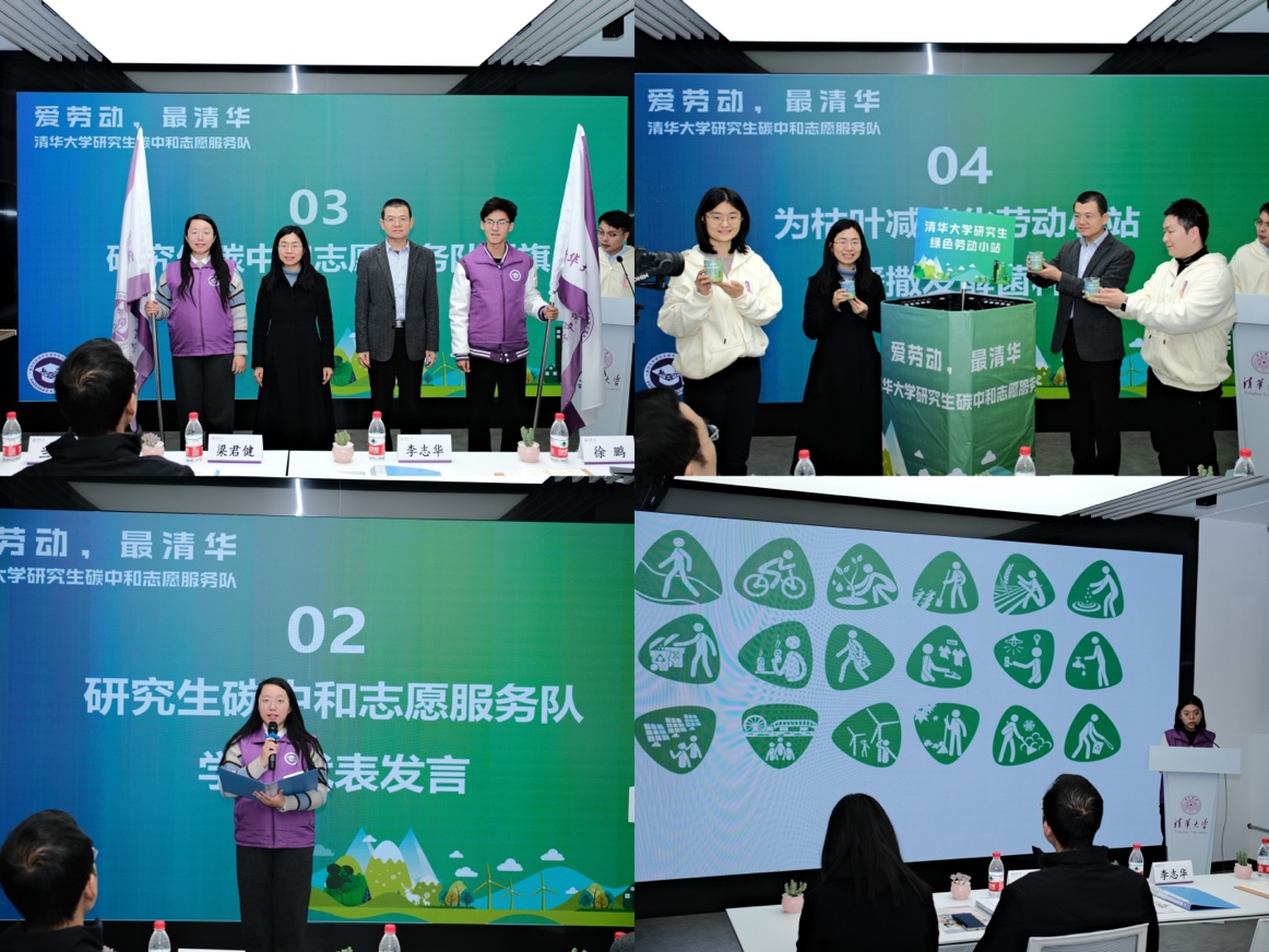 工业工程系2022级博士生王路遥宣读绿色行动倡议书,呼吁服务队成员将绿色低碳理念融入劳动教育实践之中。美术学院2024级硕士生周丽嘉介绍了志愿服务队logo以及24个日常绿色劳动图标。