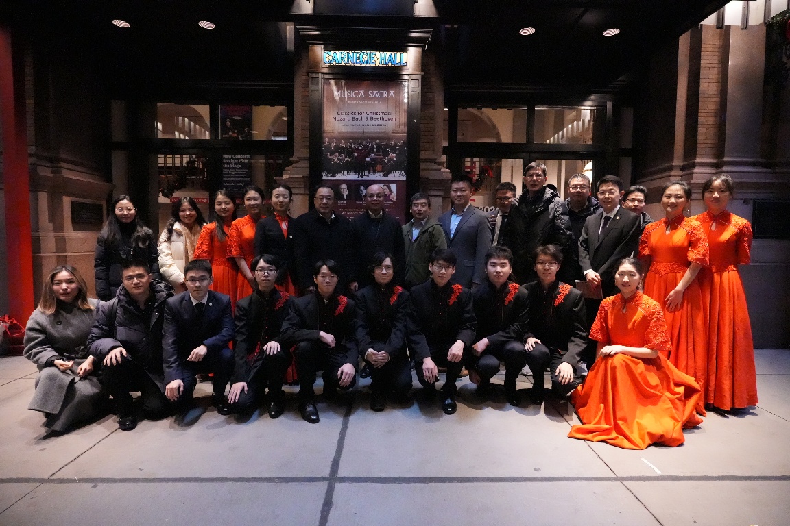 beat365官方唯一入口学生艺术团民乐队师生演出结束后与中国驻纽约总领事馆参赞合影