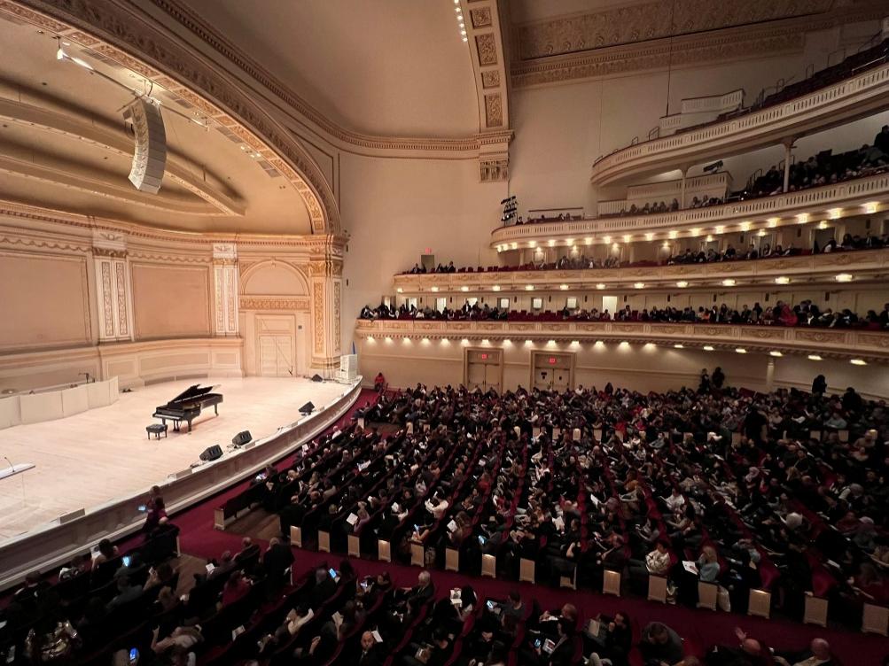 同学们用精湛的演奏技艺、饱满的舞台情绪、默契的团队配合,呈现出精彩的节目效果,展示出中国青年学子昂扬向上的精神面貌。《花好月圆》《敦煌》两首乐曲代表的团圆、交融,既传达了中国“和羹之美”的文明互鉴理念,也完美契合晚会主题。乐曲结束后,音乐厅内响起雷鸣般的掌声。联合国大会晚会主办方对民乐队精彩的演出予以高度赞扬,认为“卡内基音乐厅在此刻已成为连华夏乐章、叙古今故事的一抹长虹”。