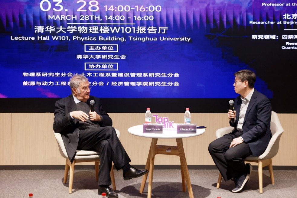 清华新闻网4月2日电(通讯员 赵强 陈秀静)3月27日至28日,校研究生会举办“诺奖对话周”暨第77、78期“巅峰对话”(TopTalk)系列活动。2011年诺贝尔化学奖得主丹·谢赫特曼(Dan Shechtman)与2012年诺贝尔物理学奖得主塞尔日·阿罗什(Serge Haroche)带来精彩的学术报告。