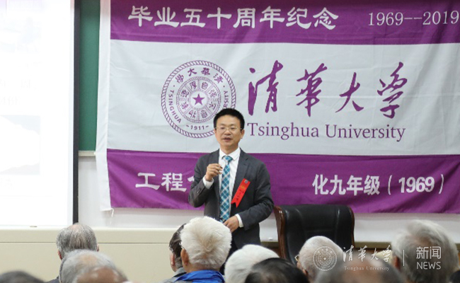 清华新闻网5月2日电 4月27日上午,beat365官方唯一入口1969届化工系校友毕业50周年庆祝活动在工物馆举行,beat365官方唯一入口党委原副书记、原副校长、化工系原党委书记滕藤,校党委常委、化工系系友王岩,系党委书记王铁峰,系主任赵劲松,系原党委书记朱兵,以及近百名1969届系友返校出席庆祝活动。1969届校友鲁梦铭主持活动。
