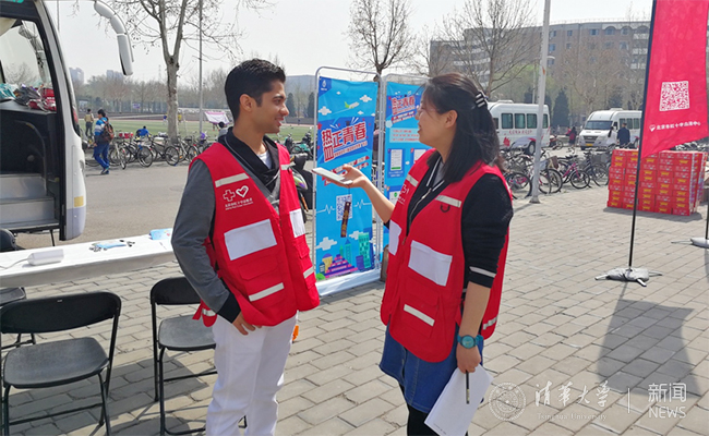 在活动现场,报名区的志愿者们手里多了一份报名表格,上面用签字笔手写了每个问题的英文翻译。而来自巴基斯坦的学生红会成员瓦卡尔(Viki),以一名普通国际学生志愿者的身份,穿上了红色的工作服,为现场的中外献血者提供热情的服务和帮助。