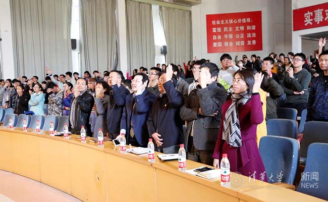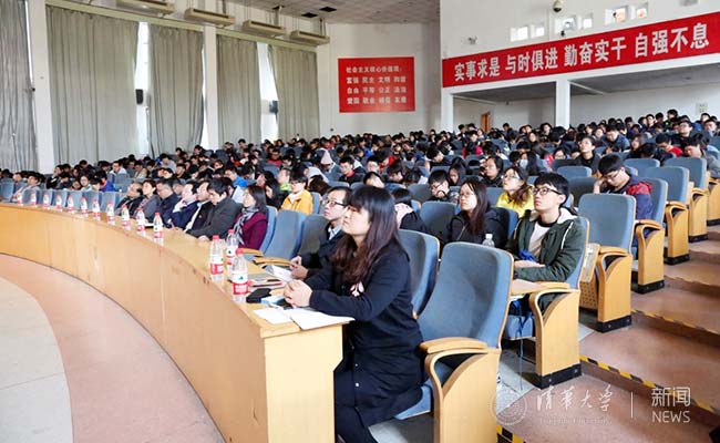 清华马克思主义学院博士生李璎珞和金哲对党的十九大报告进行深刻解读。北京石油化工学院组织部、研究生工作部、学生工作部,化工学院党委负责人,以及各院系400多名教职工党员、学生党员和积极分子参加了报告会。现场气氛十分热烈。