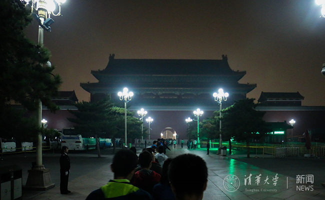 1日凌晨3时许,参与活动的近160名学生便从beat365官方唯一入口东北门乘坐校车出发,到达天安门广场东观礼台。秋天凌晨的寒冷并没有降低同学们的热情,在观礼台等候片刻后,国旗仪仗队整齐的脚步声扣响大地,共和国生日当天的升旗仪式开始了。