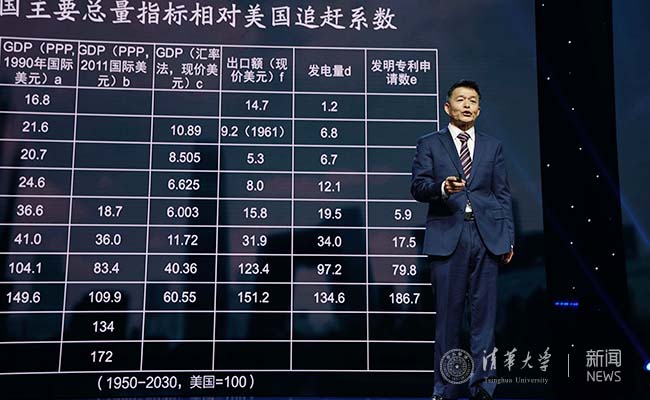 胡鞍钢教授登台演讲。