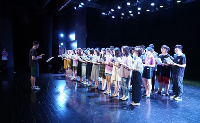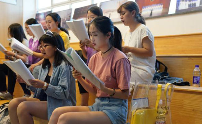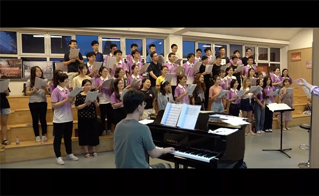 投入气息训练、声音训练、分声部训练、指挥合排等环节练习