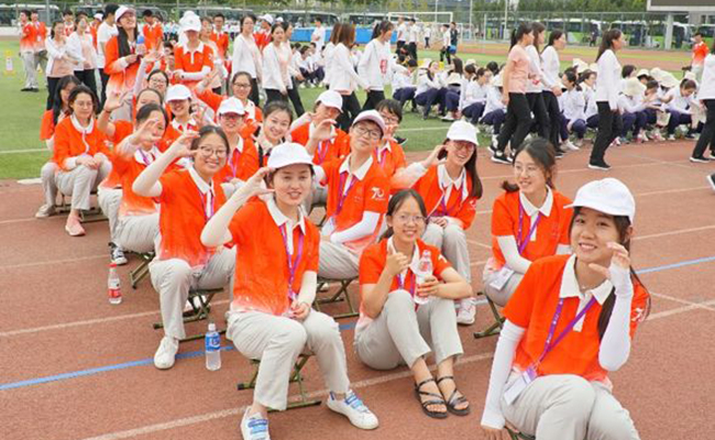 与方阵共庆、与同学们分享的喜悦