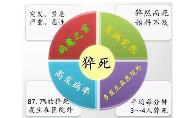 心源性猝死是指急性症状发作后 1 小时内发生的以意识突然丧失为特征的由心脏原因引起的自然死亡,而且心源性猝死90%以上发生在医院外,但是这类猝死病人的黄金急救时间只有5-10分钟,超过10分钟的抢救存活率不到1%。当发生心源性猝死(SCD)时,唯一的救治手段是胸外按压+心脏除颤,及时除颤是迄今公认制止心脏猝死的最有效方法。
