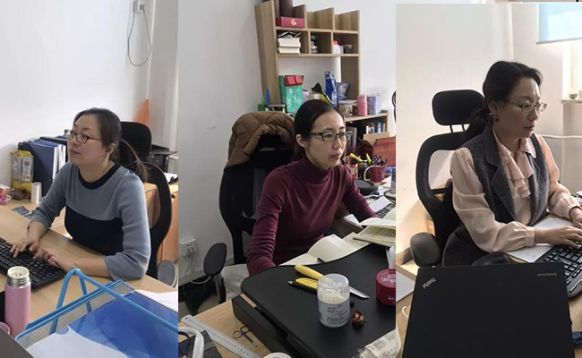 发展规划处学科办的雷环、闫春竹老师在撰写双一流中期报告,综合办的鞠琳老师在审核各类报文,几位老师都是年轻的妈妈。