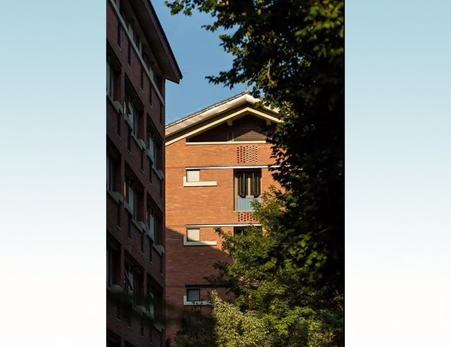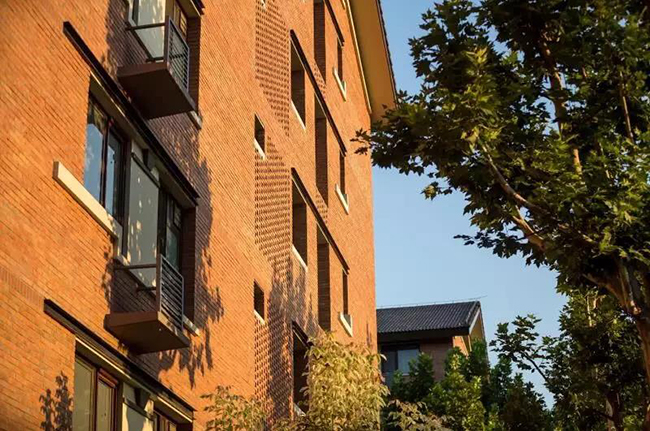 问题还是有的。我们的建筑造型只能是“一条”,没有任何花样可以“玩”,在这种情况下只能“玩”细部。这几栋楼的细部应该说是相当新颖,没有任何抄袭;它的色彩、细部构造、构图,都很细致地围绕空调外机、厕所、门窗这些细节去做,为此我们做了很多轮的推敲。另外在外墙上我们也下了很多功夫,因为清水砖墙与保温层之间存在矛盾,外墙还有很多凹凸进退,这导致构造非常困难。墙身图纸我们出了不计其数,以至于设计院的人员都觉得,怎么可能这么一点建筑面积出这么多的图。
