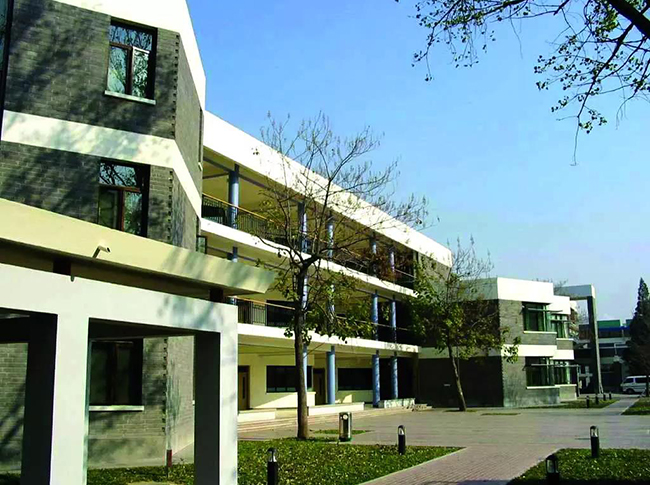 但是用灰砖有个问题,如果一层楼还可以,但是如果三层都是灰砖的话,就会显得太暗、太沉重。所以这里头有很多的技巧,使它又有典雅的特点,又非常的活泼和鲜艳。当时我们想把外墙保温放在清水砖墙里面,再砌一层砖把它们拉接起来,这是相当新颖的技术;一开始工程的承包商都不敢这么做,但我们力争做了一个样板墙,效果很好,最终才被采纳。