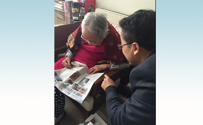 她的助手听到我的这个感慨后,拿了一篇文章给我看,说这是老人家最近在看的。我一看,这是一篇杂志上的文章《互联网也要“加”老人》,文章中有各种标记:单直线、双直线、小圈圈等,看的出来,熊学长阅读很认真。我指着划线的一句话“‘互联网+’如何亲近银发族,让网络时代的便利更多惠及老年人,是个值得关注的问题”,对老学长说:“您对老年问题的关心的确深入,怪不得会在母校捐赠建设老年学研究中心!”