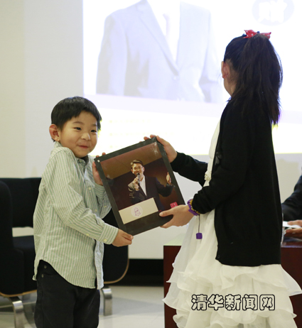 一双儿女为刘云浩老师送上活动纪念礼品。