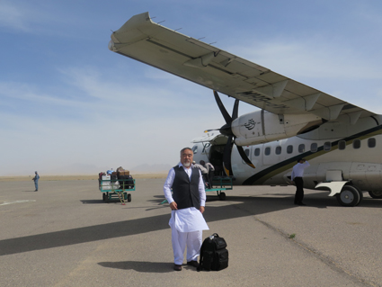 穆沙希德参议员和哈沙尔参议员陪我们飞往大班钉。大班钉意思是"给野马上马掌的大钉子。大班钉人口20万,地处巴基斯坦、阿富汗、伊朗交界处。中国在阿富汗开采的世界最大铜矿的矿石将从这里去瓜达尔港上船。从卡拉奇到俾路支斯坦的腹地大班钉1000多公里,要飞行2个多小时。我们到了机场办理登机手续。