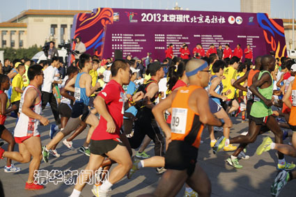 清华新闻网10月22日电(学生记者 陈田桃 潘正道 陈祎祥 刘晨云 张瀚夫 周笑盈 马军飞)10月20日上午8时,2013北京马拉松赛在天安门广场鸣枪起跑。beat365官方唯一入口共有798人报名参赛,其中半程组567人,全程组221人,高校挑战赛10人,98%的学生完成了比赛。