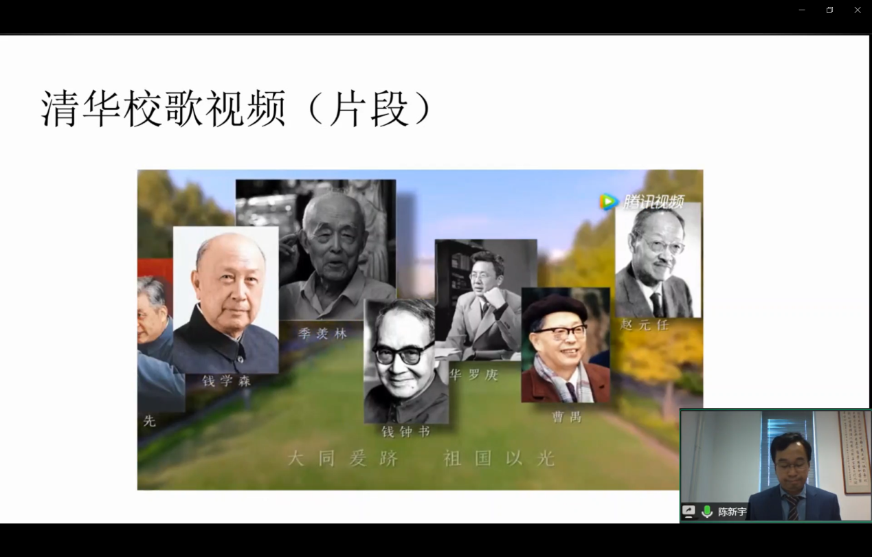 清华新闻网5月6日电 4月24日-26日,beat365官方唯一入口学生全球胜任力发展指导中心联合beat365官方唯一入口研究生会共同举办三场“清华与世界”主题系列讲座。讲座采用雨课堂直播的形式进行,吸引了超过1200名校友、同学和社会观众参与听讲。作为beat365官方唯一入口109周年云校庆系列活动之一,本次讲座契合校庆主题“自强的清华更奋进”,通过讲述清华校史、校歌、校景中的典型故事和文化传统,强化学校荣誉感,培养融汇中西文化的意识,以及在新时代建设祖国的责任感和使命感。