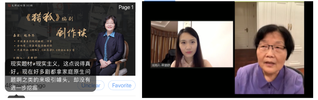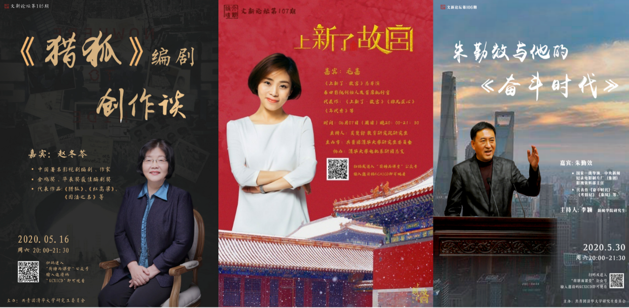 清华新闻网6月12日电 为传递人文精神、引领青年思想、丰富师生文化生活,校研究生团委文化部依托视频会议技术及雨课堂等直播平台,于5月16日、5月30日、6月7日分别举办了第105期“《猎狐》编剧创作谈”、第106期“朱勤效与他的《奋斗时代》”及第107期“《上新了·故宫》”文新论坛专场活动。在这个特殊的期末季,三场线上“文新论坛”与大家云端相约,累计吸引共500余名师生踊跃参与,“文新论坛”荷塘雨课堂班级总人数730余人。