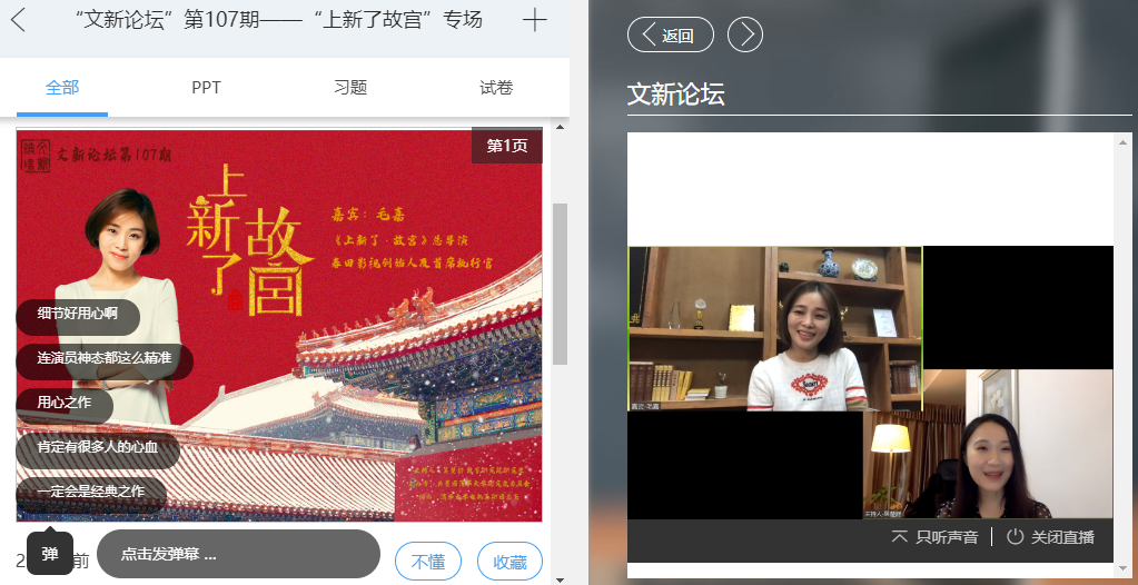 beat365官方唯一入口第107期文新论坛“《上新了·故宫》”直播现场