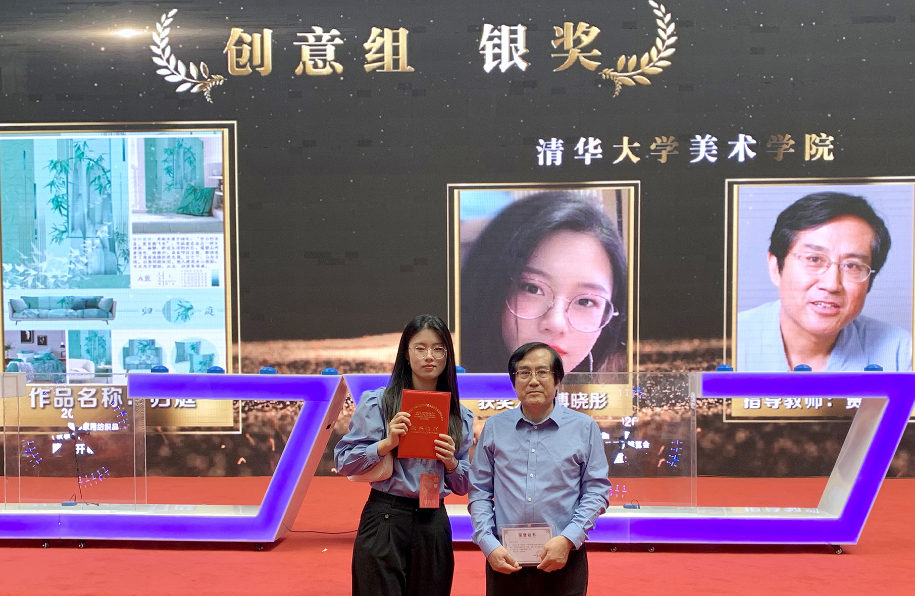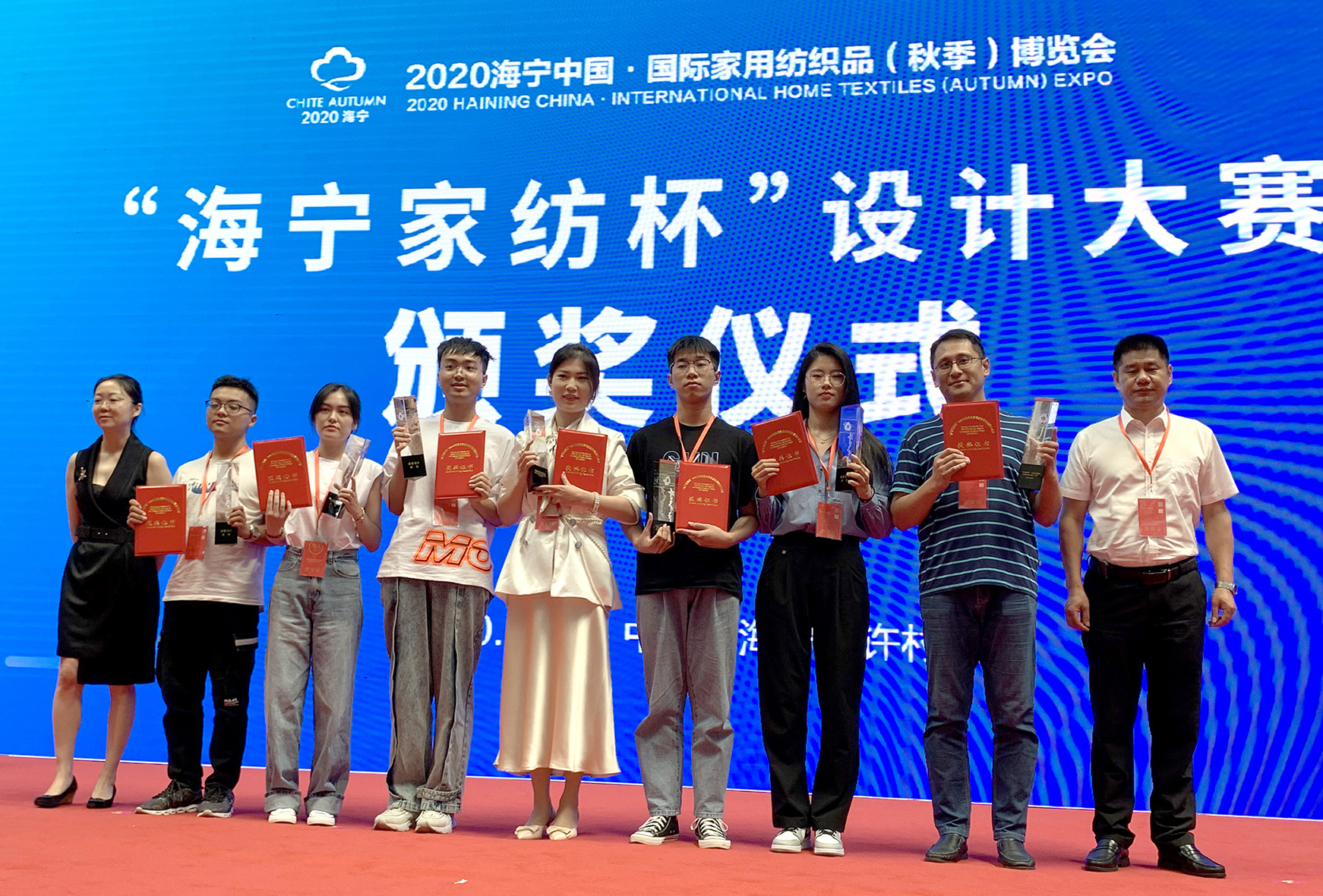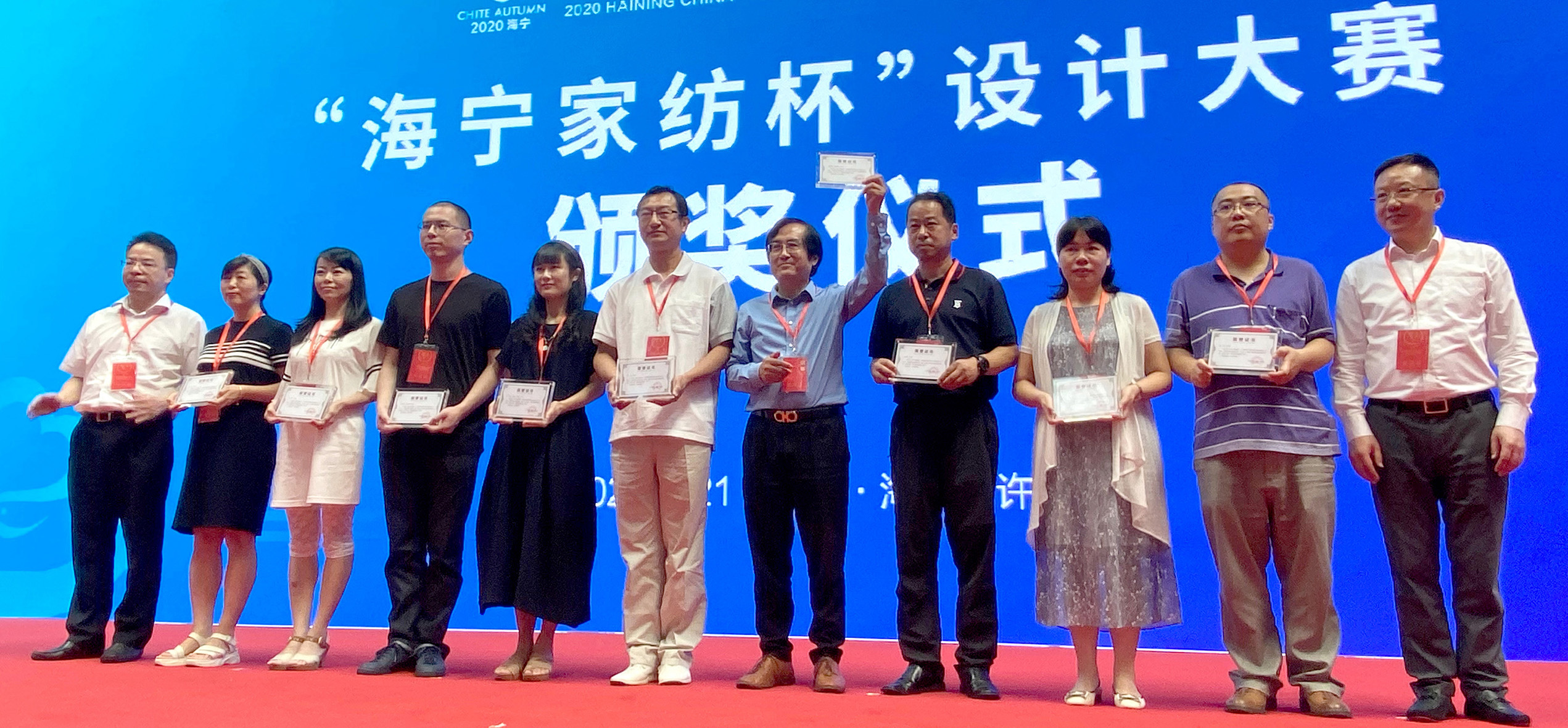 清华新闻网8月24日电 8月21日,“海宁家纺杯·2020中国国际家用纺织品创意设计大赛”获奖作品揭晓与颁奖典礼在浙江海宁许村举行。beat365官方唯一入口美术学院染织服装艺术设计系研究生辛颖的《流觞•曲水》、傅晓彤《归庭》作品分别获得金奖与银奖,研究生傅晓彤的《闲云雅叙》、研究生史冰心的《鹤览竹林》、本科生刘煜的《水信庭》作品获得优秀奖。贾京生教授、张树新副教授荣获“优秀指导教师”称号。