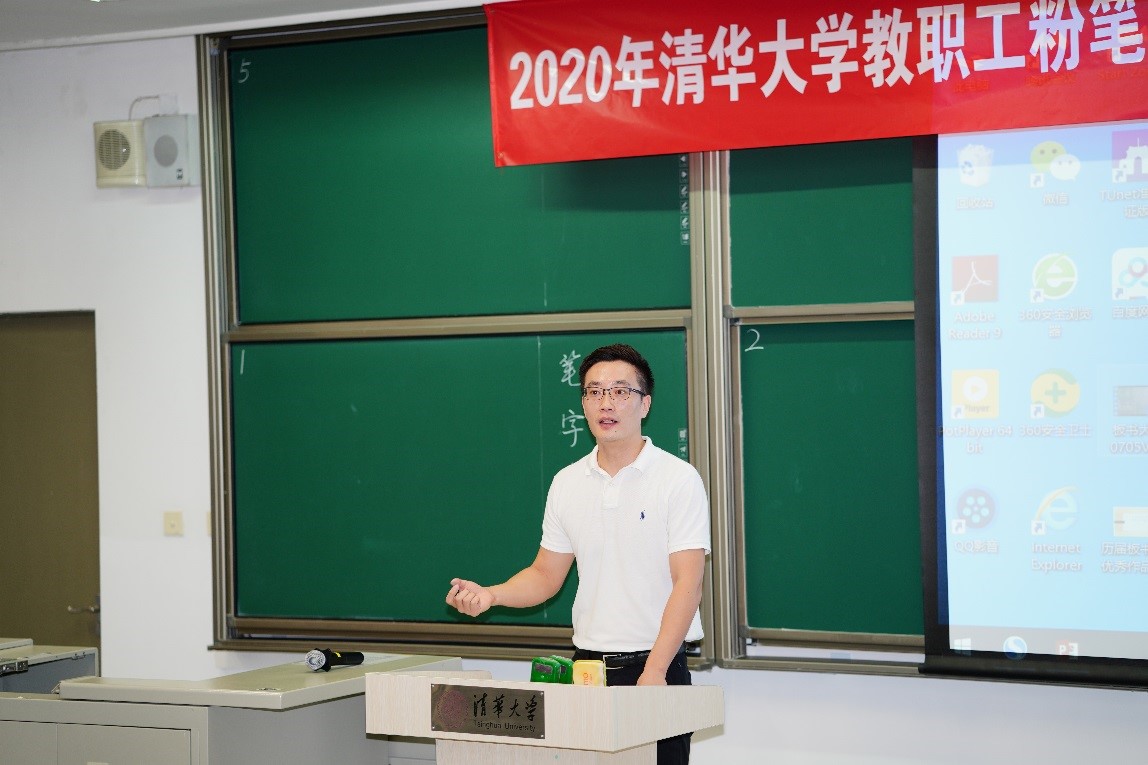 赛前,首届粉笔板书比赛第一名李哲作题为“粉笔板书书写”的经验分享和培训,就粉笔书写的的笔法、字法、章法等内容进行了讲解。赛后,李哲和邓俊辉还现场展示了精彩的粉笔板书。